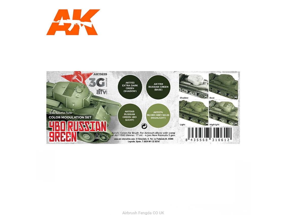 AK Acrylics 3Gen AVF SET AK11639 MODULATION 4BO RUSSIAN GREEN 3G (4x17ml)