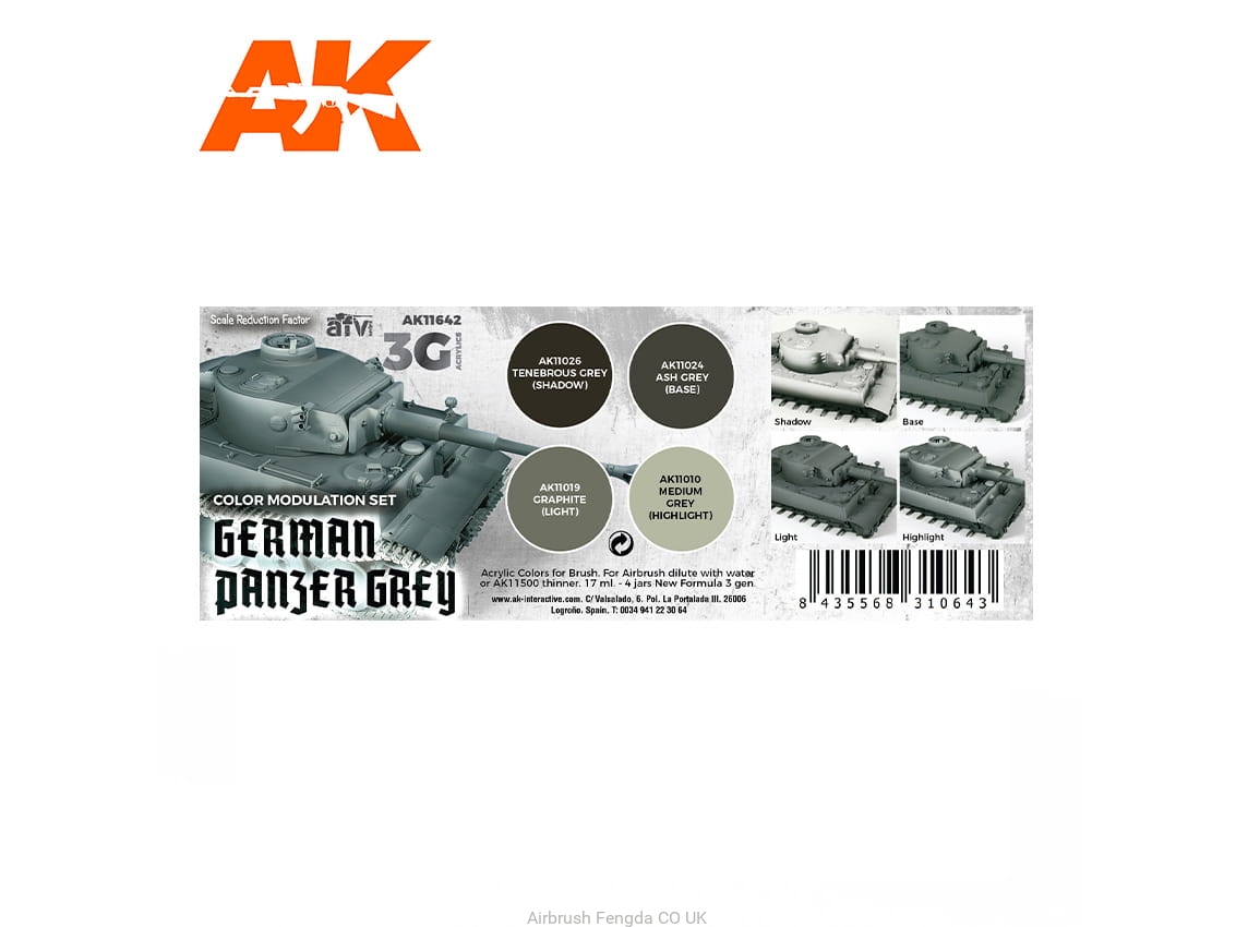 AK Acrylics 3Gen AVF SET AK11642 MODULATION GERMAN PANZER GREY 3G (4x17ml)