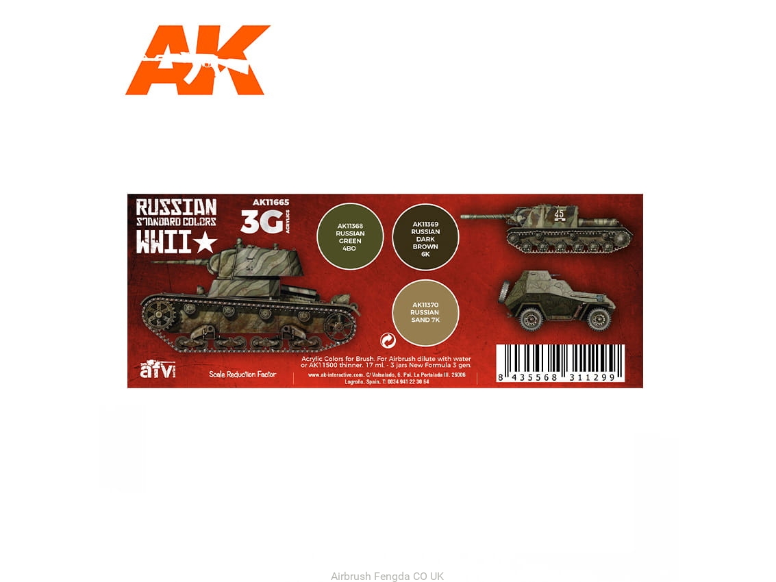 AK Acrylics 3Gen AVF SET AK11665 RUSSIAN STANDARD WWII COMBO 3G (3x17ml)