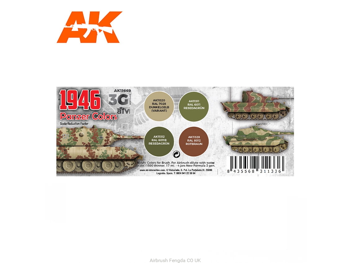 AK Acrylics 3Gen AVF SET AK11669 PANZER COLORS 1946 3G (4x17ml)