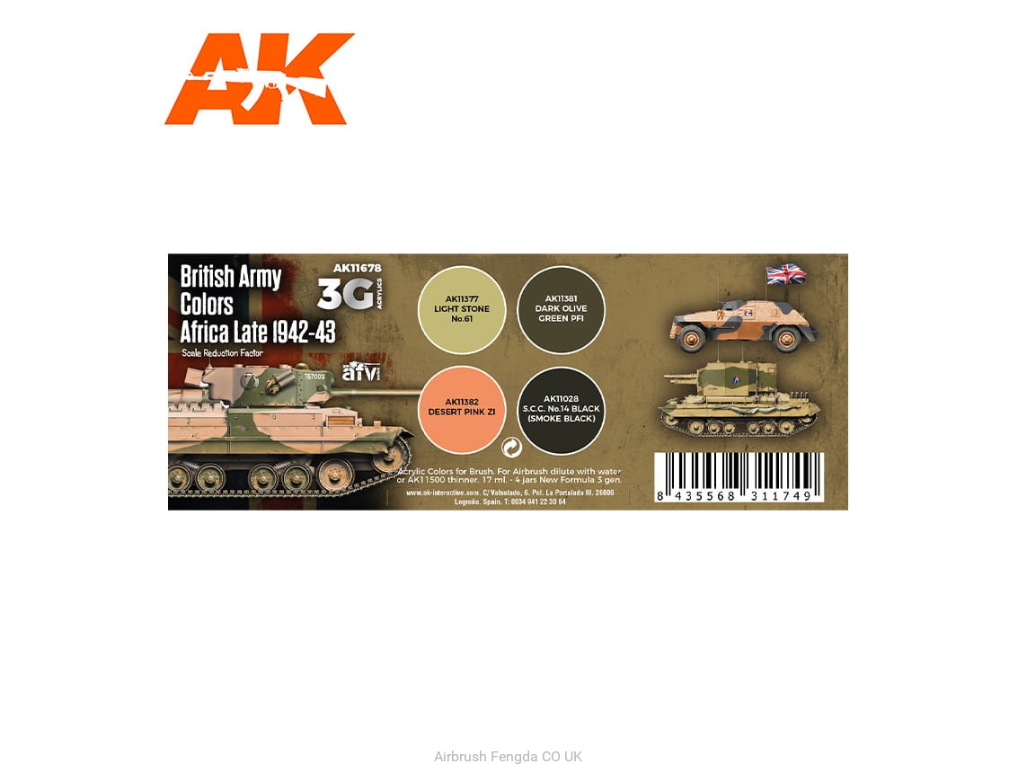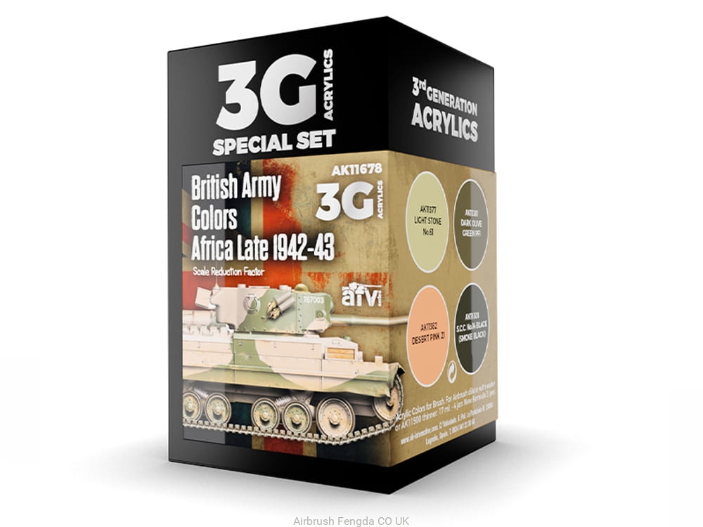 AK Acrylics 3Gen AVF SET AK11678 BRITISH ARMY COLORS AFRICA, LATE 1942-43 (4x17ml)