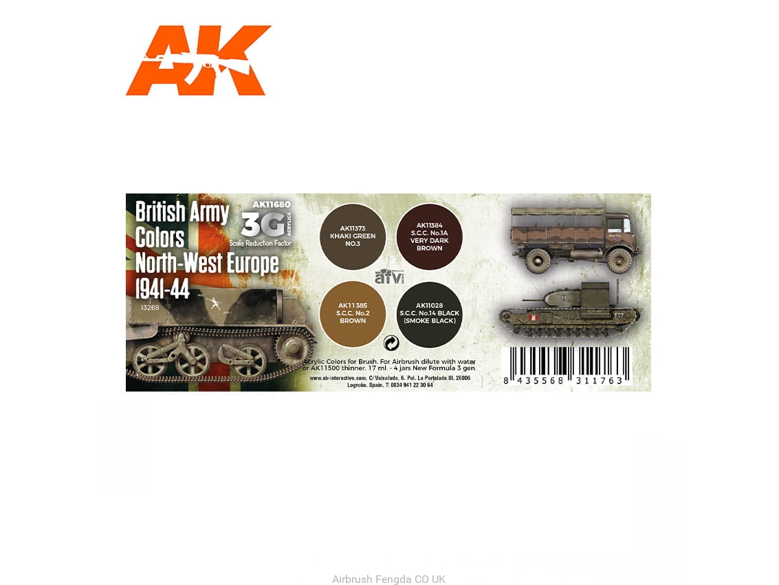 AK Acrylics 3Gen AVF SET AK11680 BRITISH ARMY COLORS EUROPE 1941-44 (4x17ml)