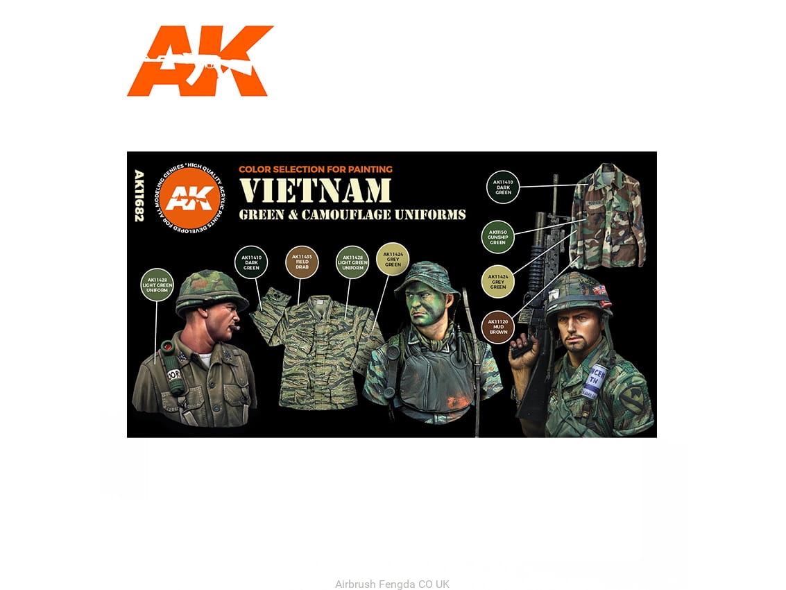 AK Acrylics 3Gen AVF SET AK11682 VIETNAM GREEN AND CAMOUFLAGE COLORS 3G (6x17ml)