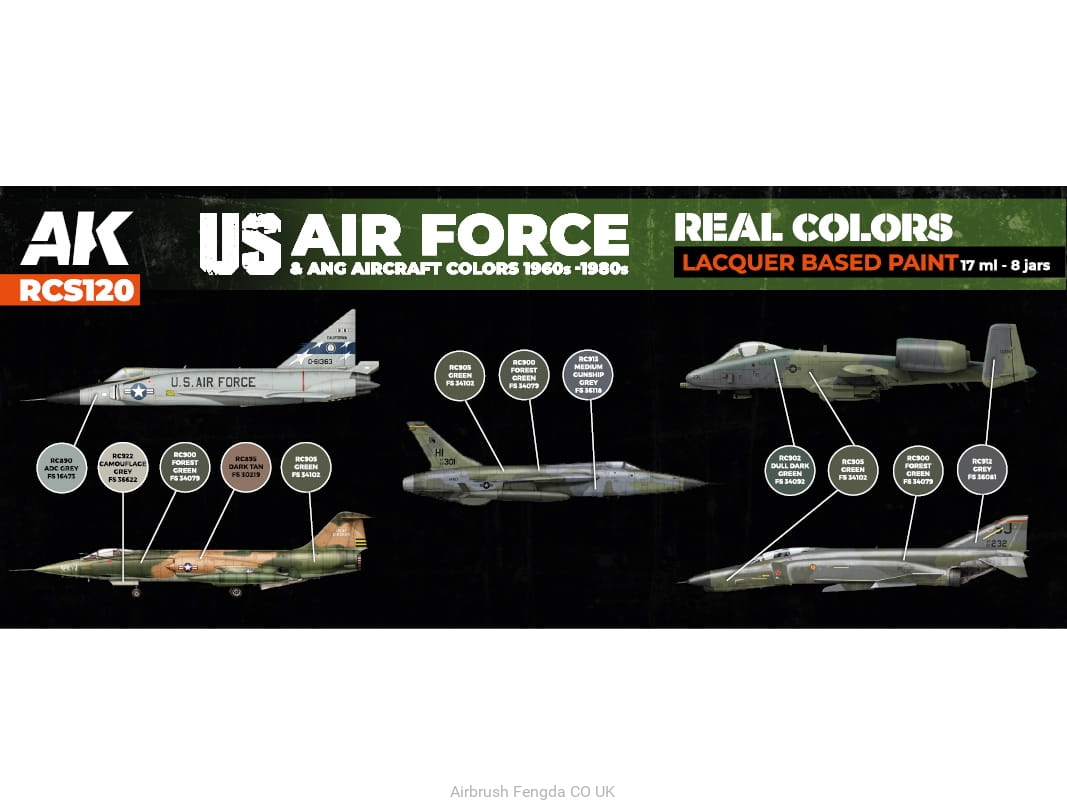 AK REAL COLORS SET RCS120 US Air Force & ANG Aircraft Colors 1960s-1980s (8x17ml)
