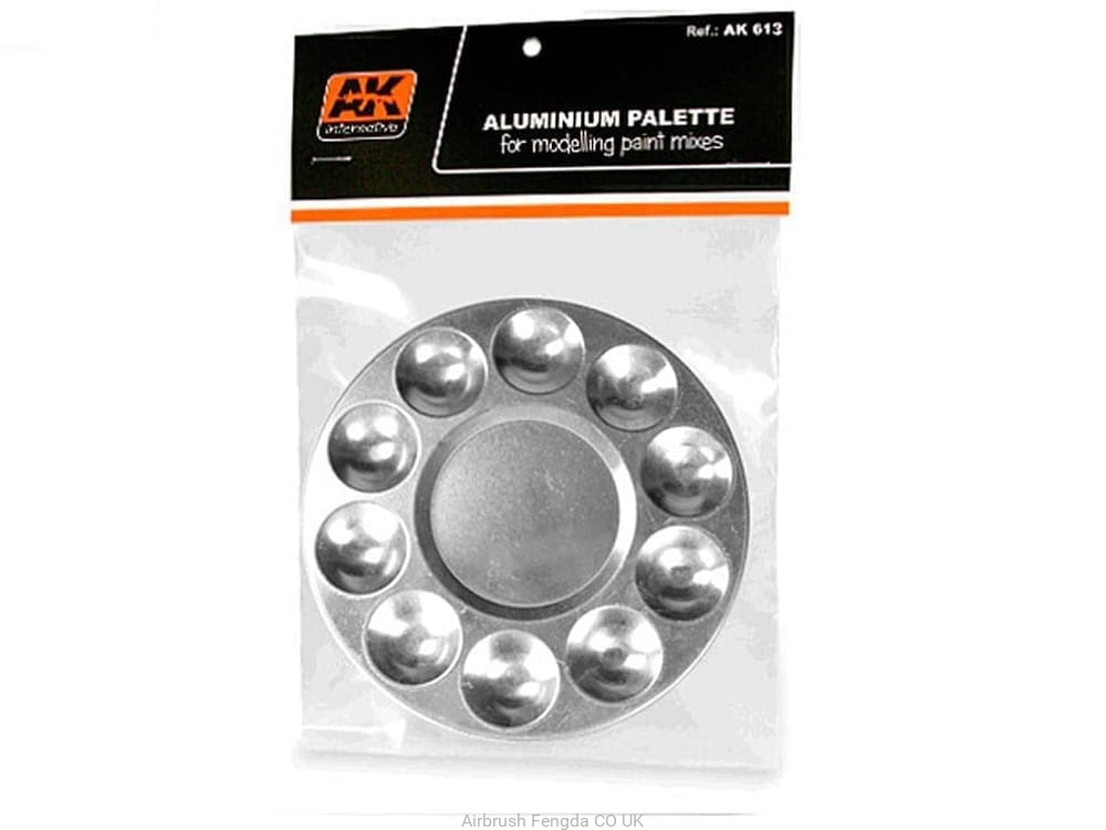 A useful everlasting tool that no bench should be without, a six well aluminum pallet for any type of paint related product: enamels, acrylics, lacquers, alcohol, acetone or any other type of thinner. Its six wells and central surface allow us to make a variety of mixtures at the same time, making this the perfect tool for modelers, and because it is aluminum, it stands up to whatever paint product is used!