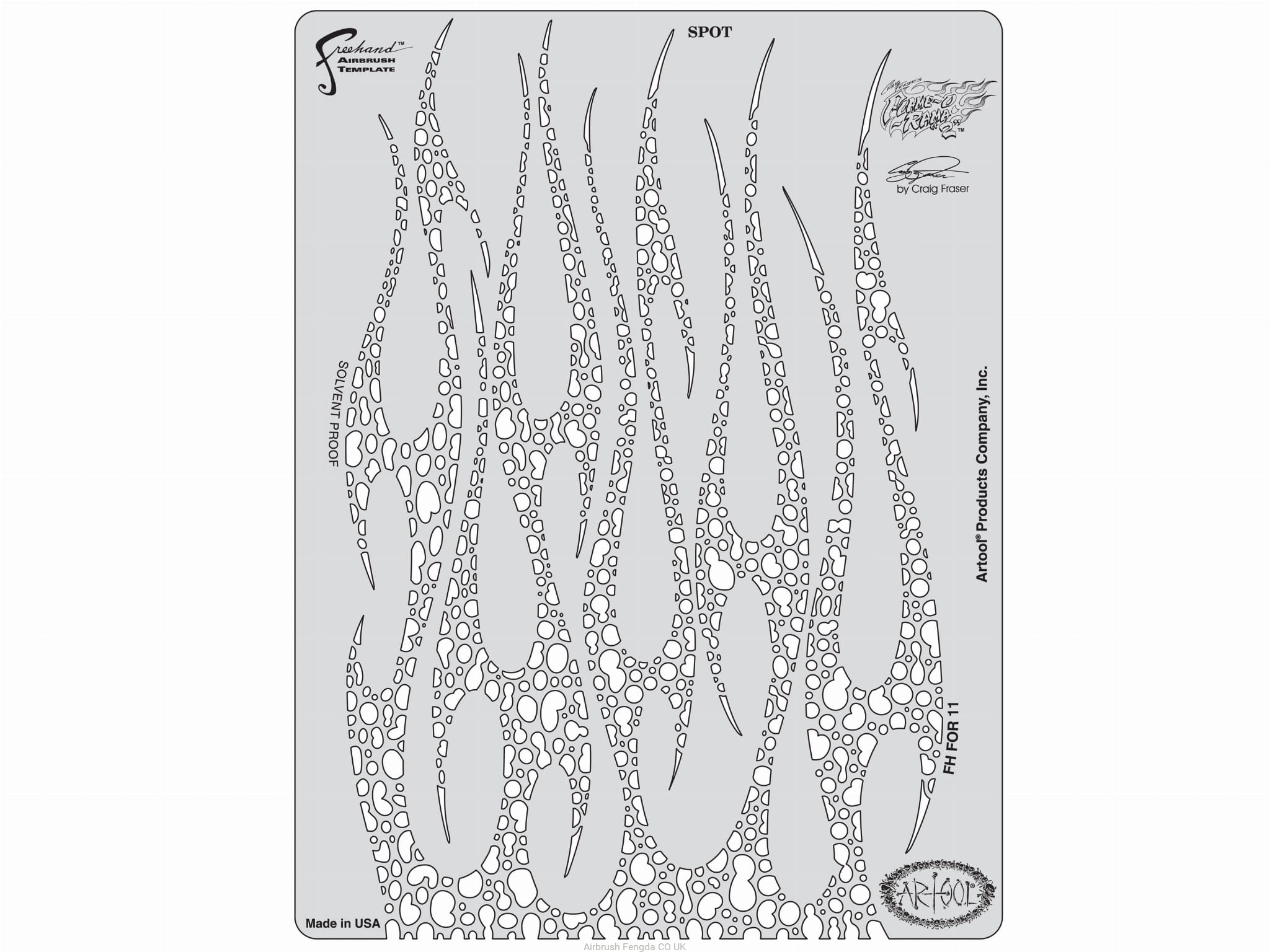 ARTOOL FH FOR 11 Flame-o-rama 2 Spot Freehand Airbrush Template by Craig Fraser
