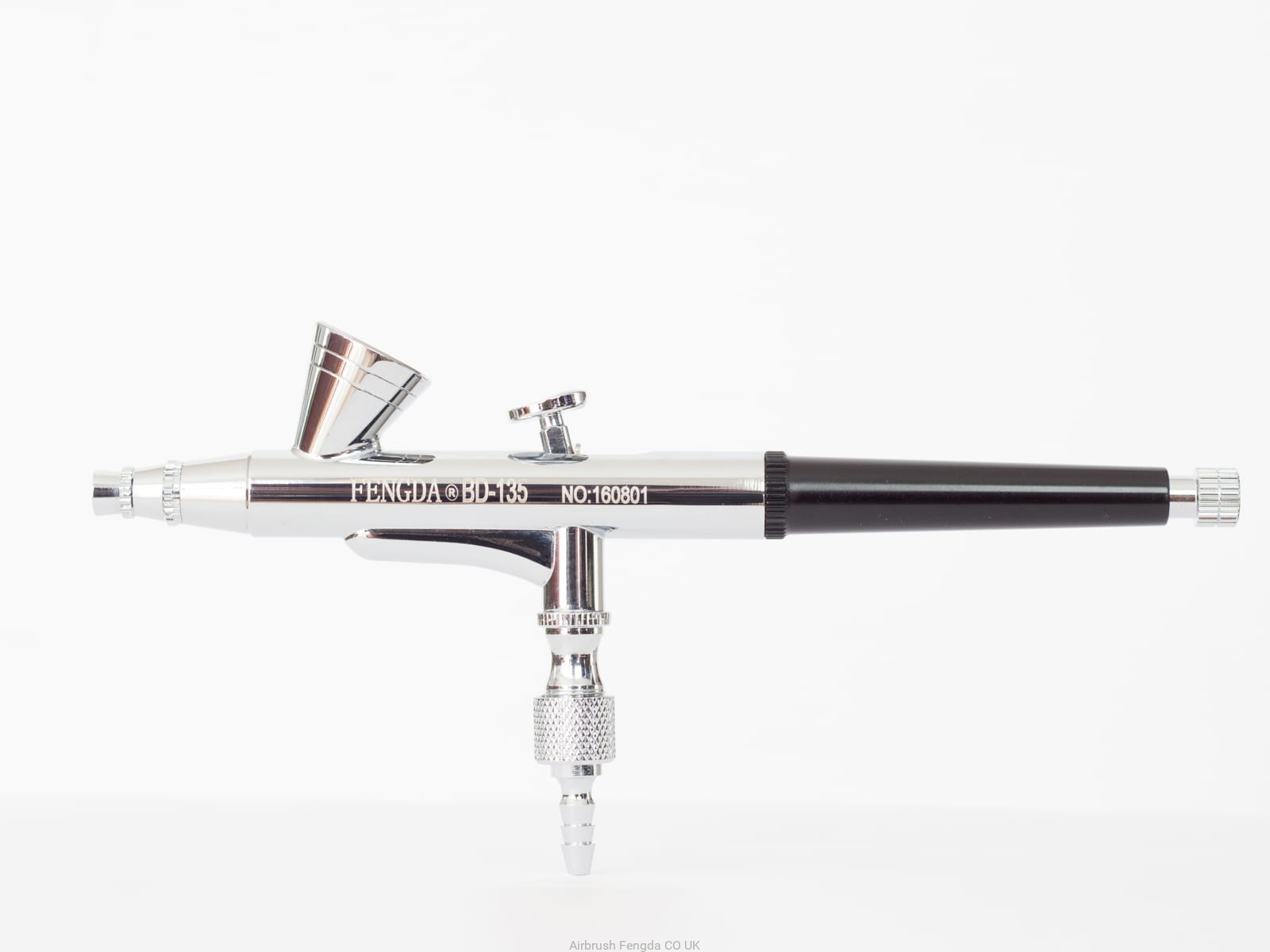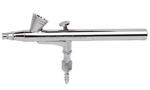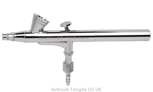 Fengda® BD-135D universal steel top filling dual function Airbrush pistol (stage one turns on the air and stage two regulates amount of paint). Supplied in a plastic box.