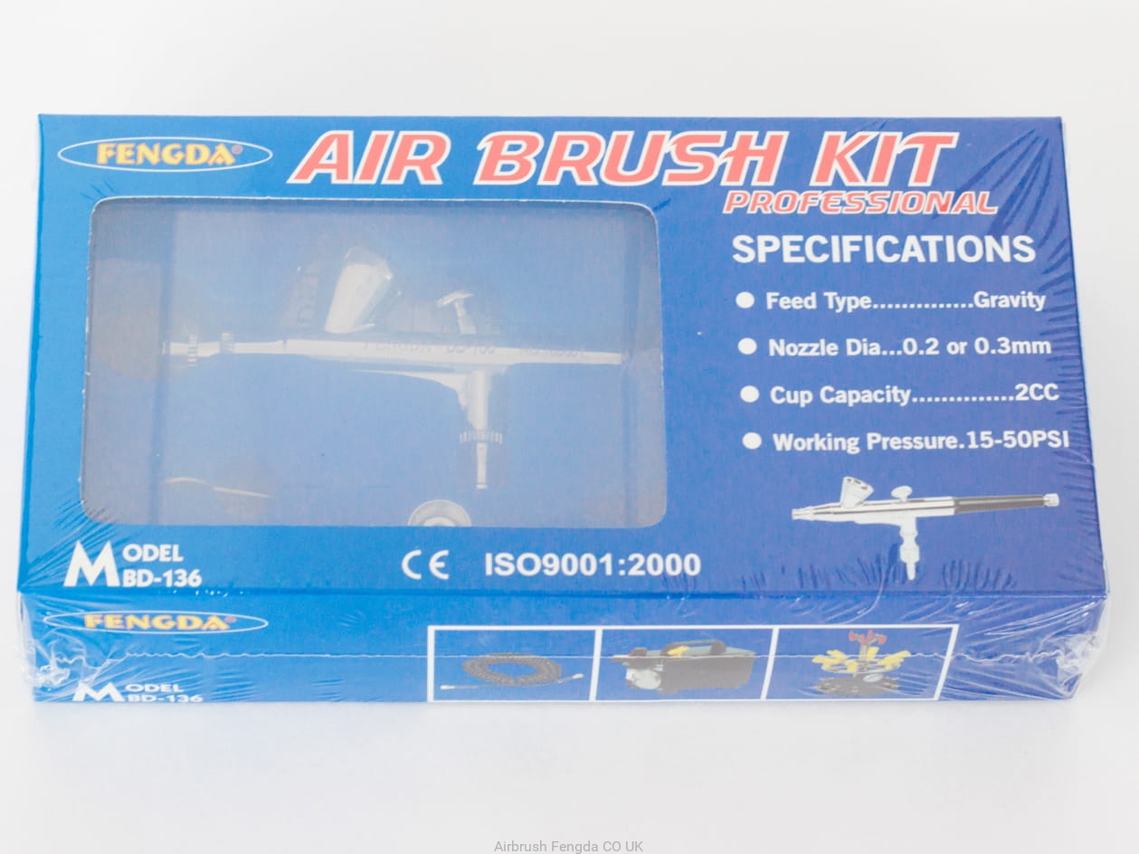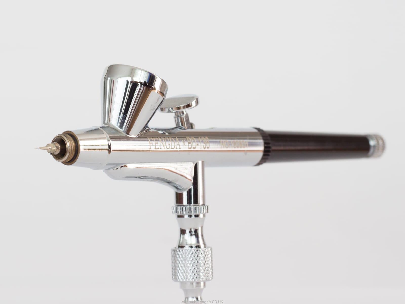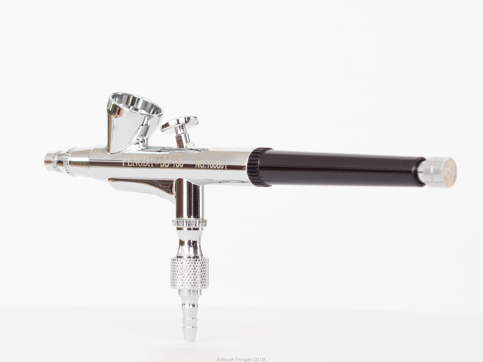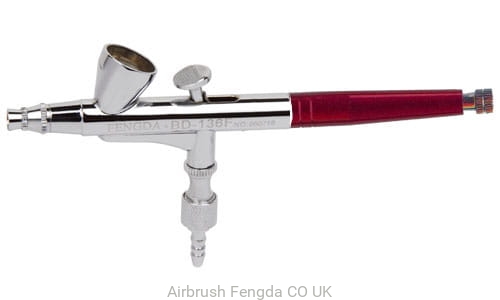 Fengda BD-136F universal steel top filling dual function Airbrush spray gun (stage one turns on the air and stage two regulates amount of paint). Supplied in a plastic box.