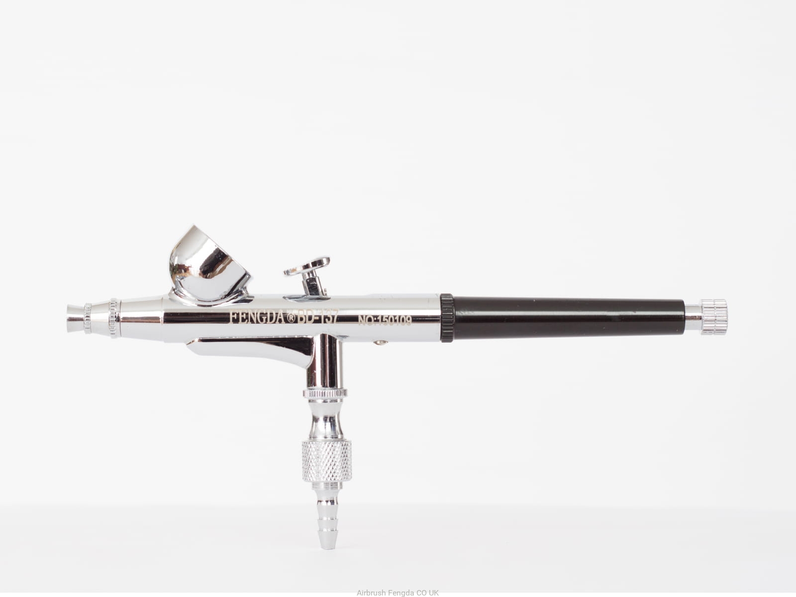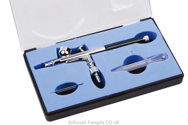 Fengda® BD-137 universal steel top filling dual function Airbrush spray gun (stage one turns on the air and stage two regulates amount of paint) with an intergrated cup. Supplied in a plastic box.