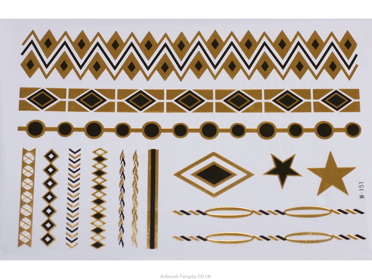 Gold Black | Jewelry Flash Tattoo stickers W-151, 21x15cm