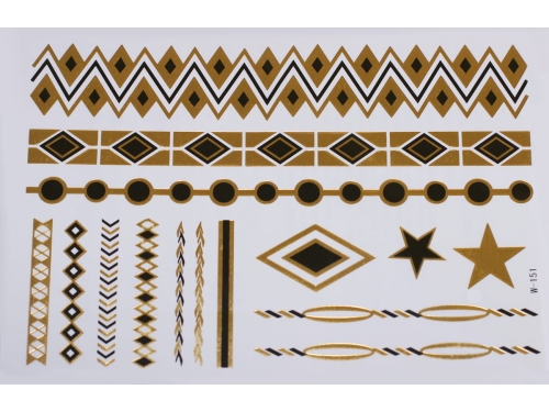 Złote a srebrne tymczasowe wodoodporne tatuażowe naklejki inspirowane biżuteria (bransoletkami, naszyjnikami, pierścionkami, indyjskie, afrykańskie, egipskie, motywy geometryczne i inne), tatuaż wytrzyma 3-5 dni, dla aplikacji i usunięcia przygotowaliśmy dla Was poradnik:
