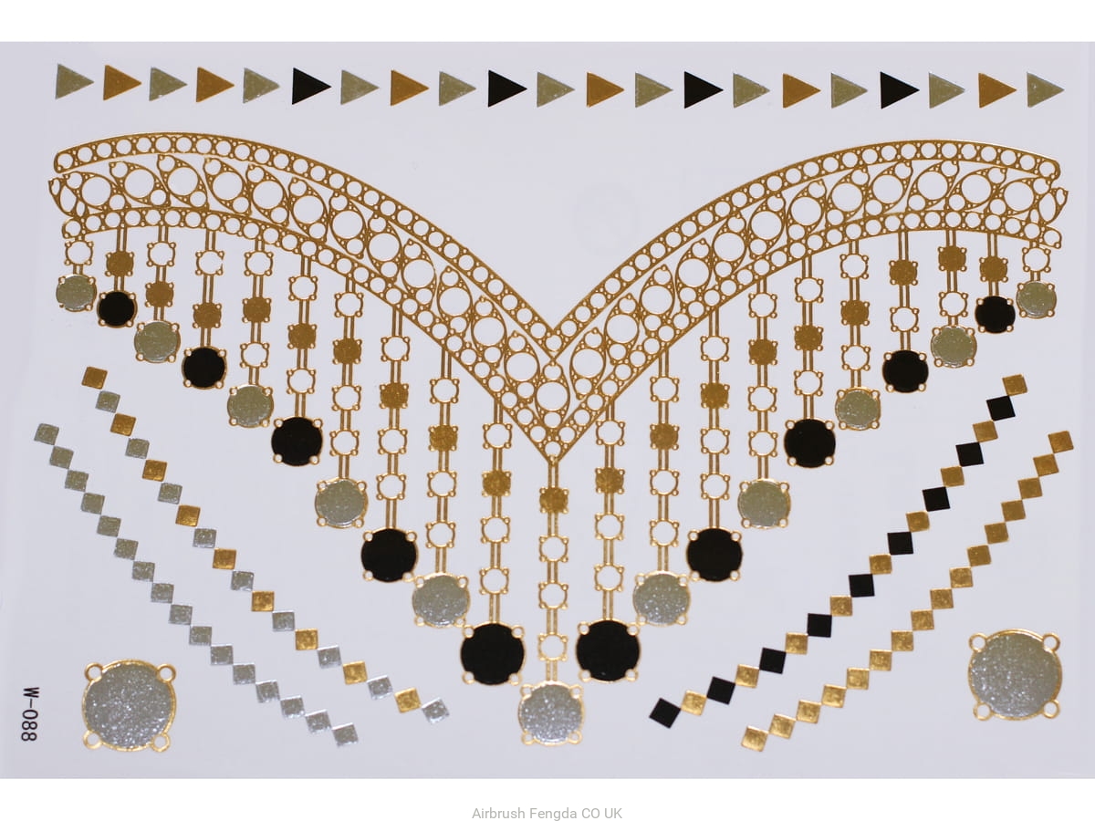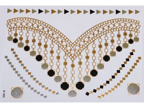 Gold Silver Black | Jewelry Flash Tattoo stickers W-088, 21x15cm