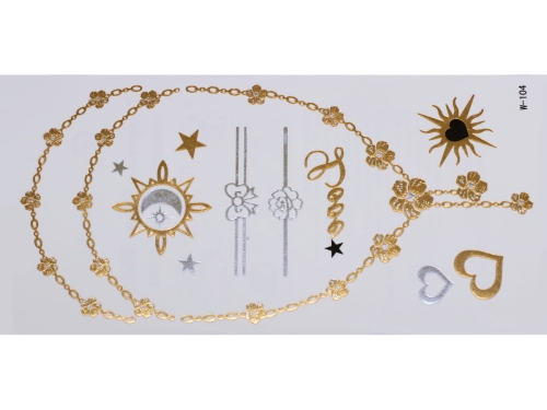 Gold Silver Black | Jewelry Flash Tattoo stickers W-104, 21x11cm