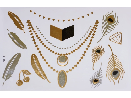 Złote a srebrne tymczasowe wodoodporne tatuażowe naklejki inspirowane biżuteria (bransoletkami, naszyjnikami, pierścionkami, indyjskie, afrykańskie, egipskie, motywy geometryczne i inne), tatuaż wytrzyma 3-5 dni, dla aplikacji i usunięcia przygotowaliśmy dla Was poradnik: