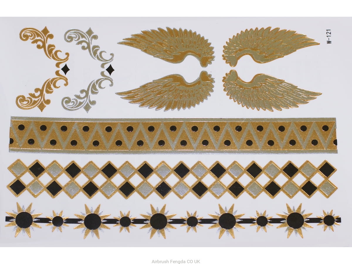 Gold Silver Black | Jewelry Flash Tattoo stickers W-121, 21x15cm