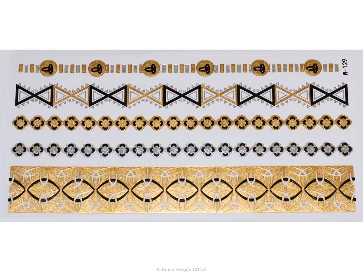 Gold Silver Black | Jewelry Flash Tattoo stickers W-129, 21x11cm