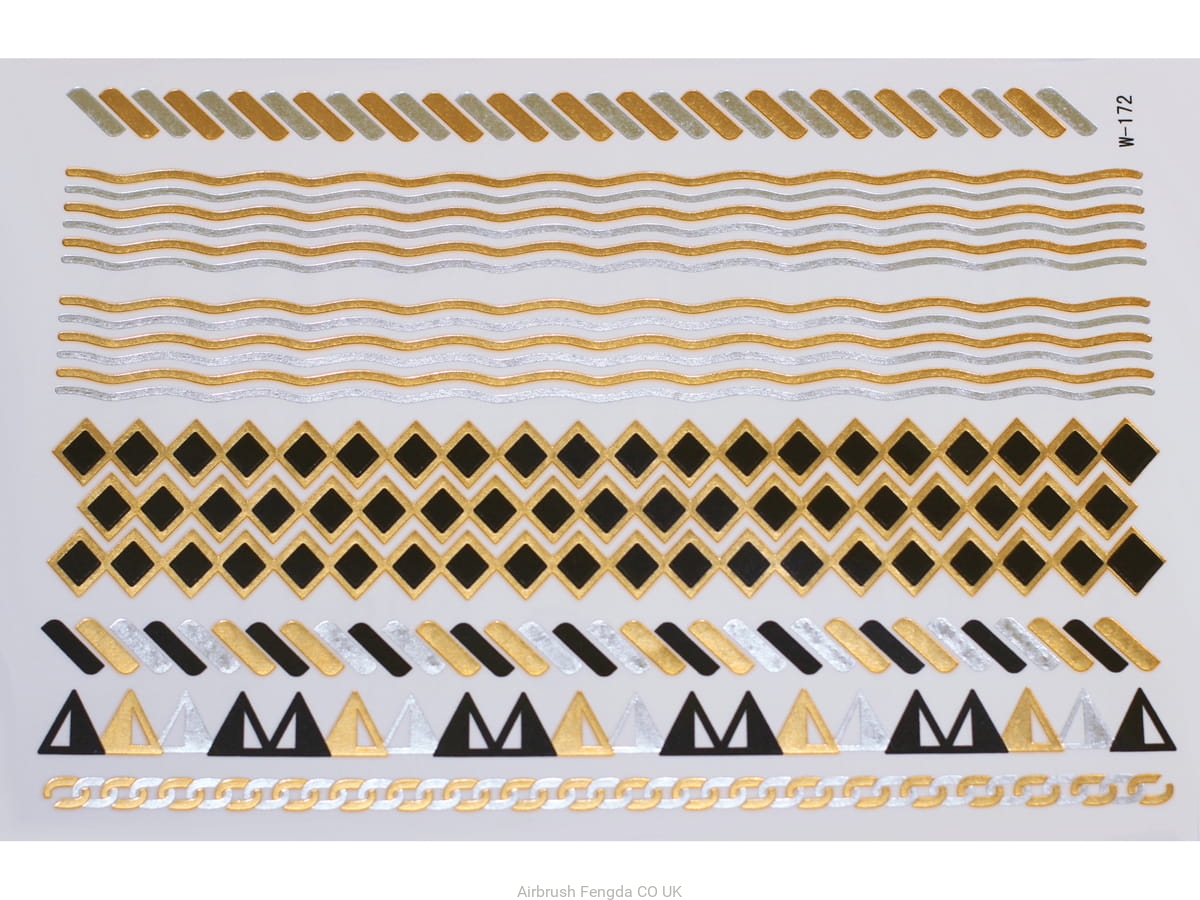 Gold Silver Black | Jewelry Flash Tattoo stickers W-172, 21x15cm
