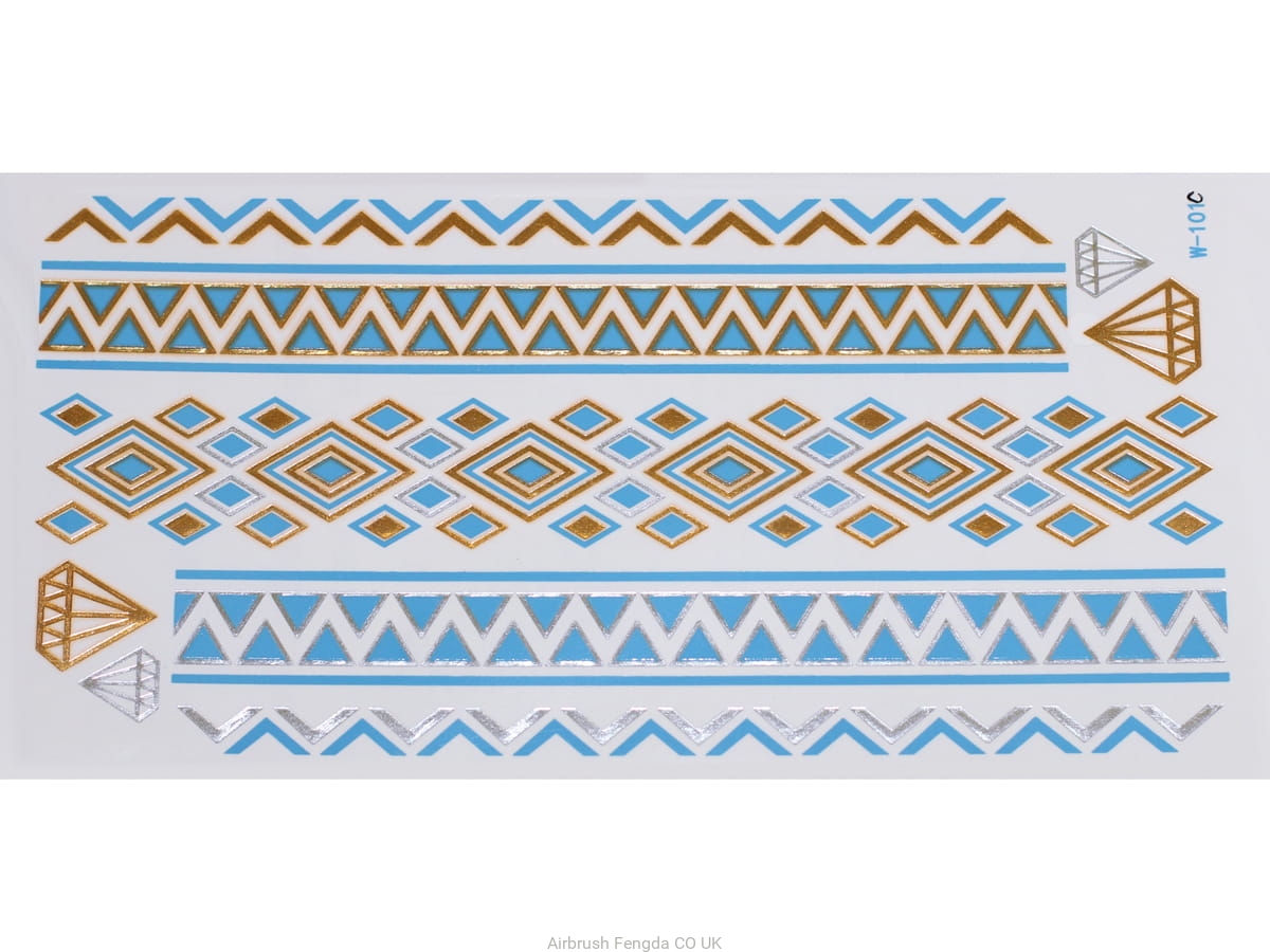 Gold Silver Blue | Jewelry Flash Tattoo stickers W-101C, 21x11cm