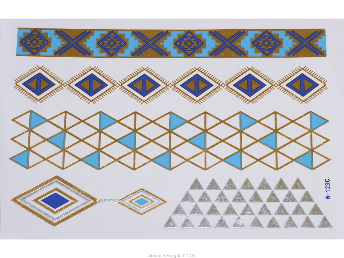 Gold Silver Blue | Jewelry Flash Tattoo stickers W-123C, 21x15cm