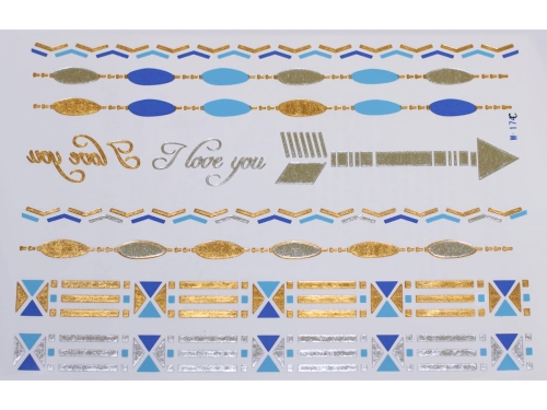 Gold Silver Blue | Jewelry Flash Tattoo stickers W-174C, 21x15cm