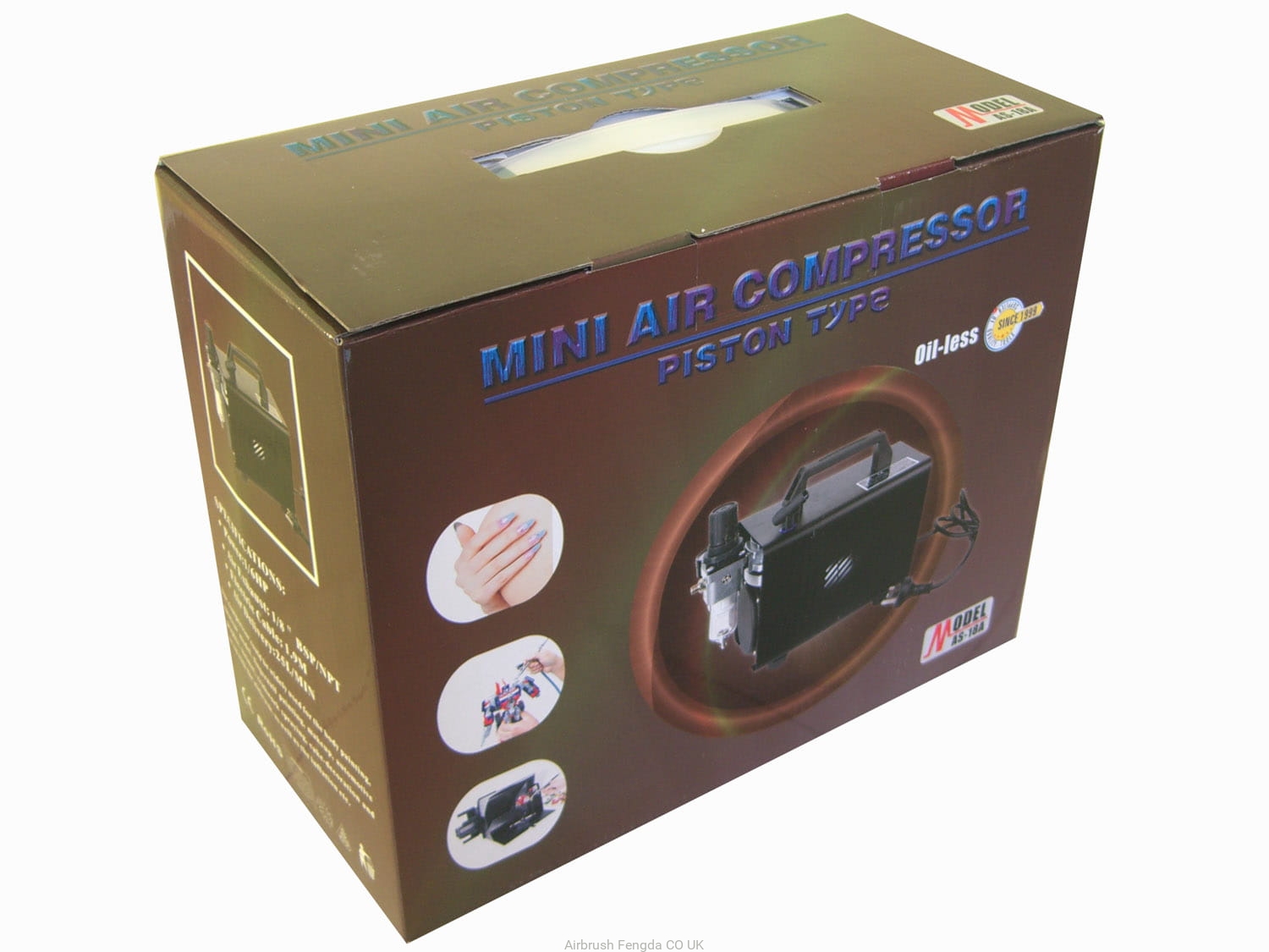 The advantage of Fengda Compressor AS18B is it's low noise so it can even be used at home. Thanks to it's low weight it's also easily portable. This compressor is used in professional nail salons.